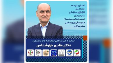 ۷ حزب شاخص جریان اصلاحات و اعتدال حمایت خود را از دکتر هادی حقشناس در حوزه انتخابیه بندر انزلی اعلام…