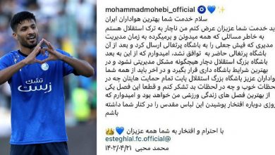 محمد محبی با انتشار پستی در اینستاگرامش از هواداران استقلال خداحافظی کرد. او نوشت: من ناچار به ترک استقلال هستم…
